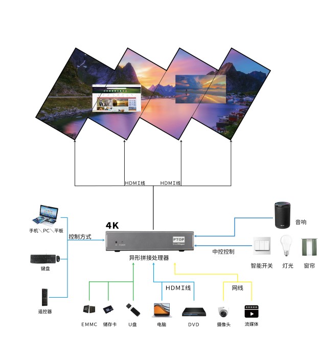 异形拼接屏是经过专门的设计之后,达到不规则拼接起来使用,同时辅以异形拼接处理器对图像进行专门处理,从而显示出不规则的信号画面,针对这一需求推出了一款功能强大操作简单的异形拼接处理器。