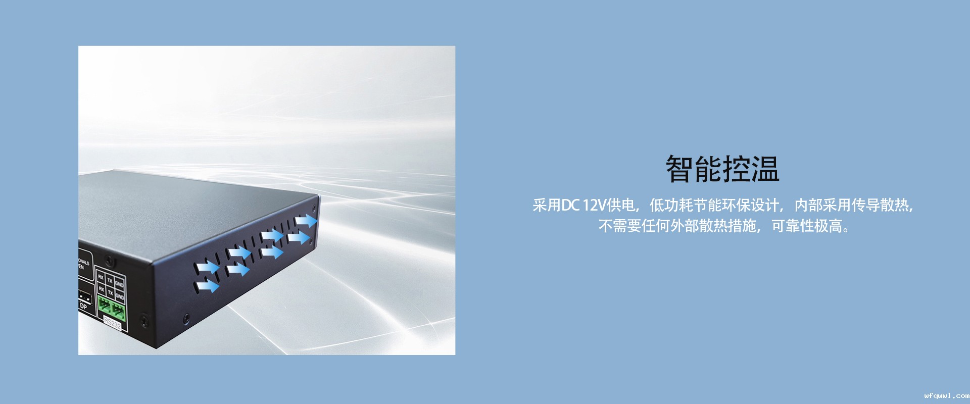 3. 采用DC 12V供电,低功耗节能环保设计,内部采用传导散热,不需要任何外部散热措施,降低使用成本;