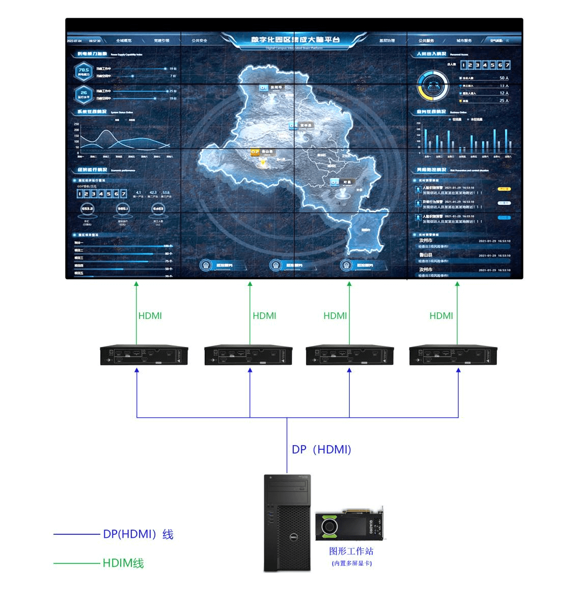 多屏宝拥有成熟的多屏扩展技术,通过跟多屏显卡的配合实现自定义各种不同的超清分辨率,支持1×N、M×1、M×N等模式点对点拼接显示。在超高分的桌面上可以运行各种可视化大数据软件,满足展示中心、会议中心、监控中心、企业大屏看板等不同场景的可视化需求!