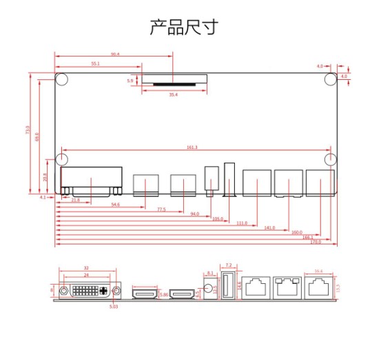 Ø支持内置VGA(最大1920x1200@60)输入(乐华排针标准定义),支持DVI(最大3840x2160@30)输入。