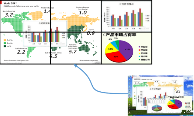 ● 任何信号源都可以通过简单的拖、拉、拽等方式上屏,实现任意布局和调度,还可以通过点击信号源画面进行放大、缩小操作;