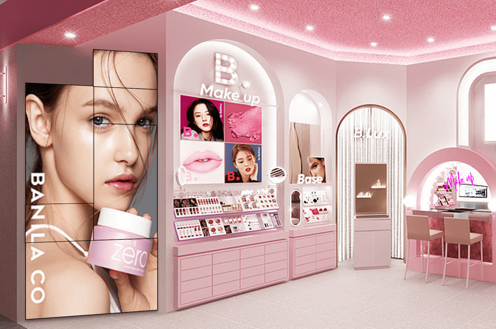 在服装、化妆品等零售店的拼接屏使用上可以通过异形拼接处理器实现单屏播放、大小屏组合播放等显示需求,支持播放不同的宣传内容,与顾客建立交互式沟通,刺激顾客产生消费。