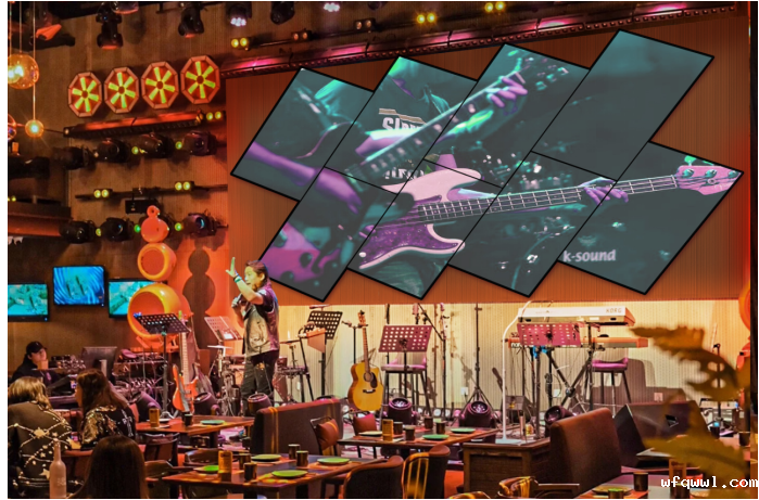 在激烈的行业竞争中,音乐餐厅结合异形拼接屏打破了固有的显示模式,不一样的风格类型,展现多元化的设计风格,给消费者带来全新的视觉体验,打造前沿的“潮品”,彰显餐厅的高端魅力。