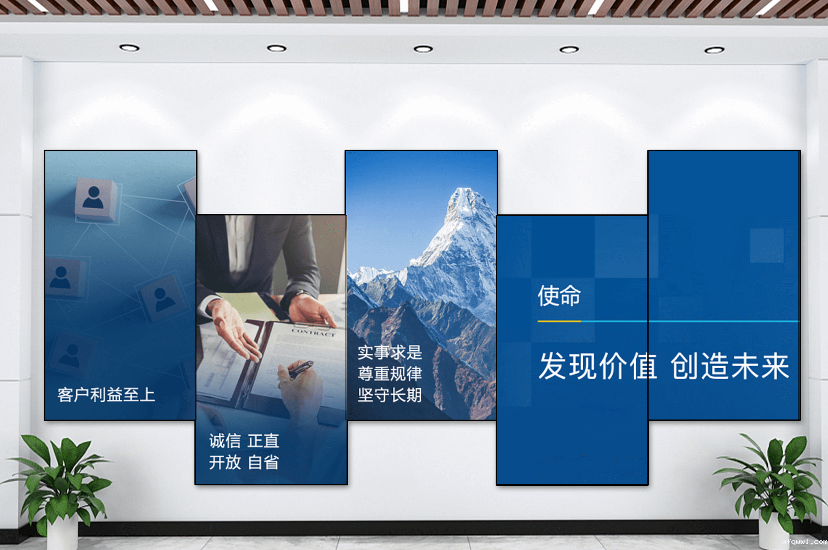由多个异形屏组成整体的多媒体迎宾墙,回顾活动照片,美好留念,创新展示;播放超高清企业广告宣传片,效果震撼,提升品牌形象。