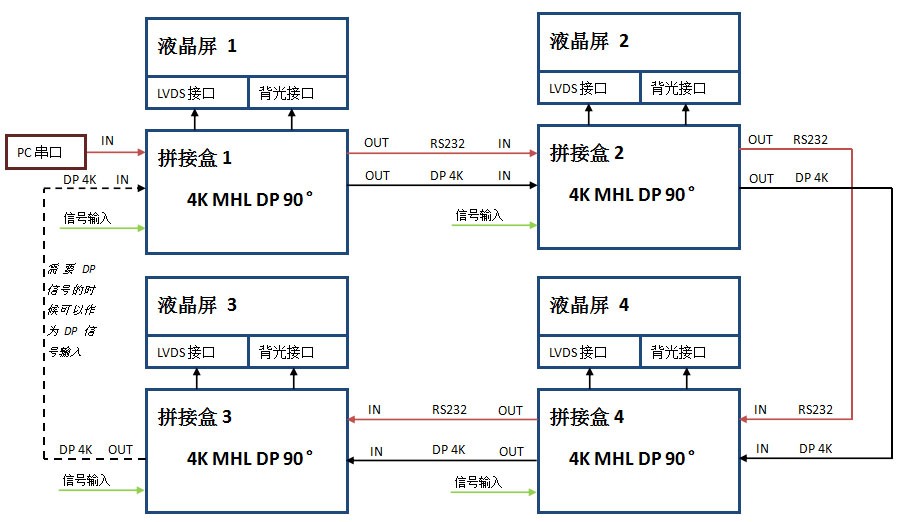 支持4K输入,点4块1920拼接屏(3840x2160) 时候,可以实现点对点显示显示画面无压缩拉 伸,显示效果更清晰逼真 |